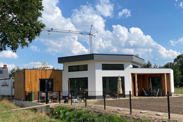 In St. Oedenrode is op industriële wijze een ruime villa gerealiseerd. Vier maanden nadat de vrachtwagens de prefab houten wand- en dakelementen hadden gebracht, konden de eigenaars hun woning betrekken.