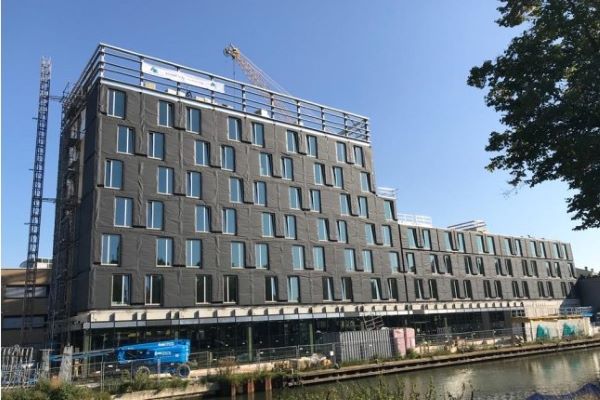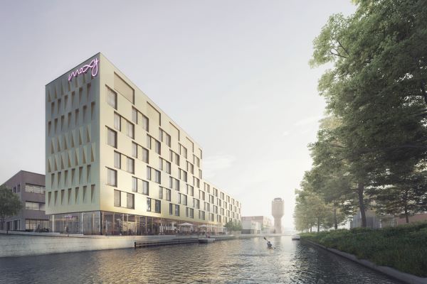 In opdracht van Vastint Hospitality wordt in Utrecht een Moxy hotel gebouwd. Het gebouw kent een uitzonderlijke constructie en bouwmethodiek. De kamers zijn uit houten elementen opgebouwd, just in time aangeleverd en op een betonnen onderconstructie tot op hoogte gestapeld.