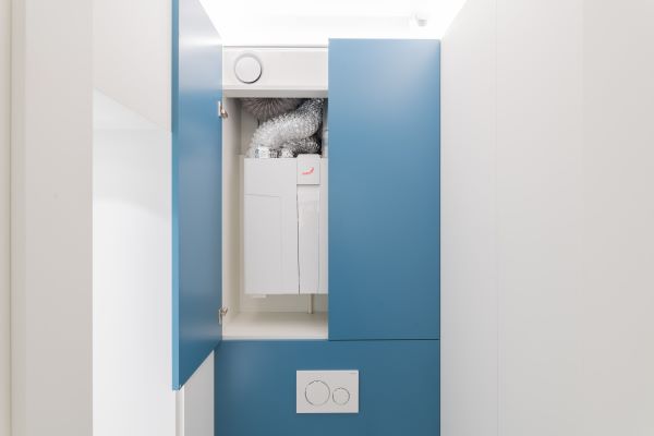Verwarming, elektriciteit, ventilatie en domotica, inclusief leidingen, bedradingen en contactpunten, allemaal samen in één slimme module. Zo wordt de montagesnelheid verhoogd en worden de kosten verlaagd. De module is makkelijk te demonteren en bevordert het circulair bouwen.