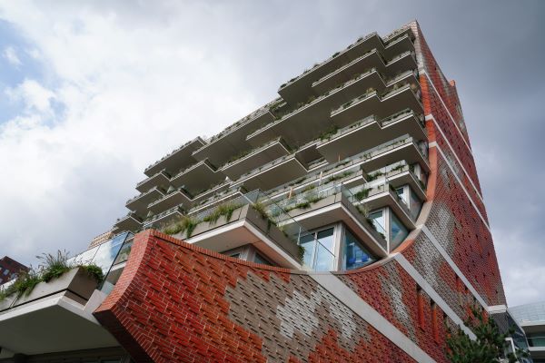 Bij de wooncomplexen The George en Gustav in Amsterdam beschikken de bewoners over ruime prefab betonnen terrasbalkons, kenmerkend onderdeel in de trapsgewijze architectuur. Bij The George zijn ook prefab betonnen plantenbakken opgenomen om via ‘vertical gardening’ de gevels een groen karakter te geven.