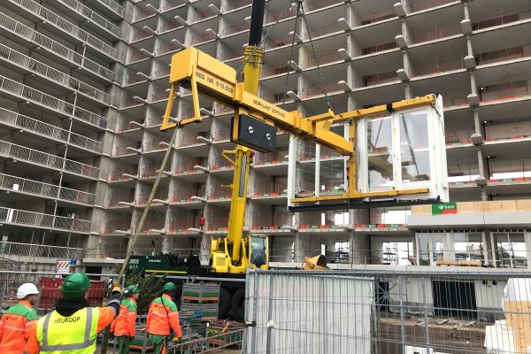 YOTEL Hotel Amsterdam is door Heddes Bouw & Ontwikkeling grotendeels modulair opgebouwd. Met hotelkamers die in de fabriek als prefab betonnen units zijn vervaardigd, inclusief alle installaties en afwerkingen, waardoor het op de bouw een kwestie van monteren en koppelen werd.