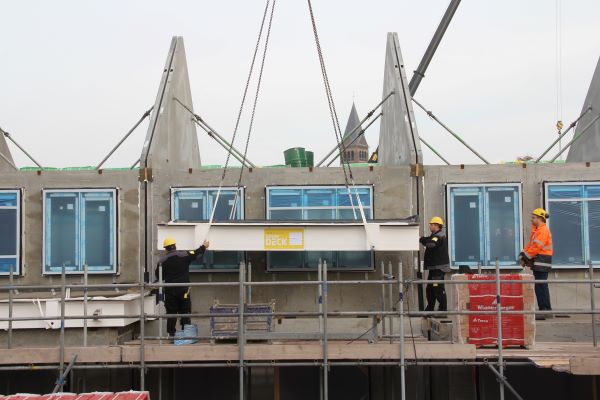 Een doorbraak in de bouw: prefab betonnen woningcasco’s geproduceerd met een betonmengsel dat 44% minder CO2 uitstoot in vergelijking met andere betoncasco’s.