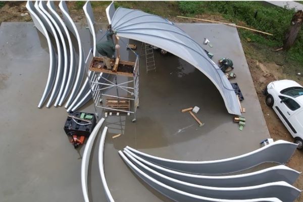 Voor een moskeekoepel in het Lokeren heeft Polycel Special Products geprefabriceerde schaaldelen van glasvezel gewapend polyester geleverd en gemonteerd. In luttele dagen was de koepel gereed.