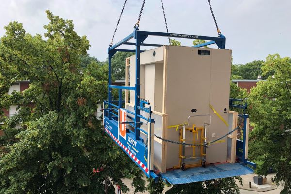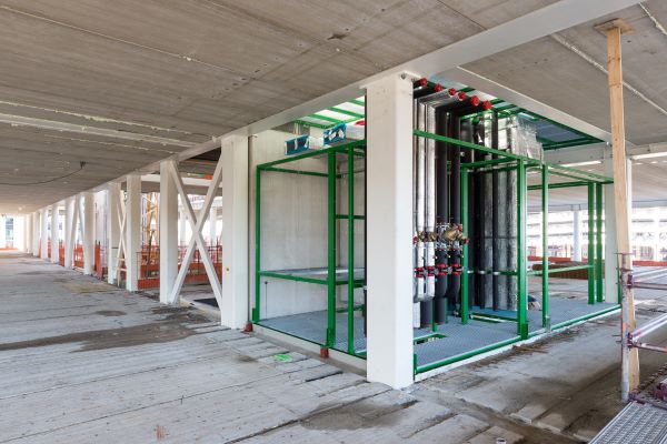 Aannemer BAM past bij de bouw van het 11 verdiepingen tellende onderzoeksgebouw Accelerator in Utrecht volledige prefab installatieschachten toe. Daarin zijn de installatieonderdelen vooraf gemonteerd. Alleen nog een kwestie van koppelen per verdieping.