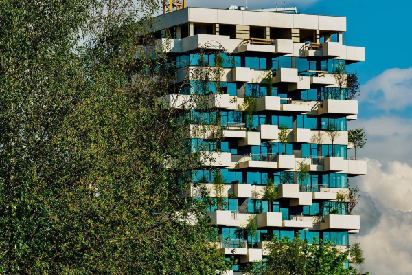 In het stedelijk herontwikkelingsgebied Strijp-S in Eindhoven wordt binnenkort Toren Trudo in gebruik genomen. Een woontoren van 9 verdiepingen met een groene gevel met 125 volwassen bomen en 5.200 struiken en planten.