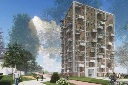Woontoren De Coninxpoort wordt door Trebbe gebouwd in opdracht van woningcorporatie Centrada. Het gebouw is ontworpen door Inbo architecten en krijgt 14 bouwlagen. In De Coninxpoort komen studio’s en appartementen met één, twee of drie slaapkamers. De woningen krijgen diverse oppervlaktes van 36m2 tot en met 100m2. Een gevarieerd aanbod aan huurwoningen dus. Bouwen met prefab beton was voor Trebbe niets nieuws. De combinatie van een prefab beton cascomet kant-en-klare gevels echter wel. “Het proces vraagt meer voorbereiding,” legt Schuurman uit. “Denk aan de engineering van de prefab elementen. Het geheel moet precies in elkaar passen. De betonproducenten Bestcon en Constar maakten elk hun eigen tekeningen, maar er was daarbinnen sprake van afstemming.” Voor Bestcon, die de wanden en vloeren voor het casco levert, was het best een puzzel. “Vanwege de verschillende afmetingen van de woningen, is geen bouwlaag hetzelfde,” aldus werkvoorbereider Dèniel Juliana van Bestcon.